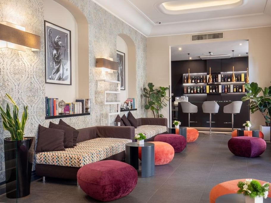 Il nostro Lounge Bar è il luogo perfetto per concedersi un momento di svago dopo una giornata alla scoperta di Roma, sorseggiando un aperitivo, un cocktail o un buon bicchiere di vino.